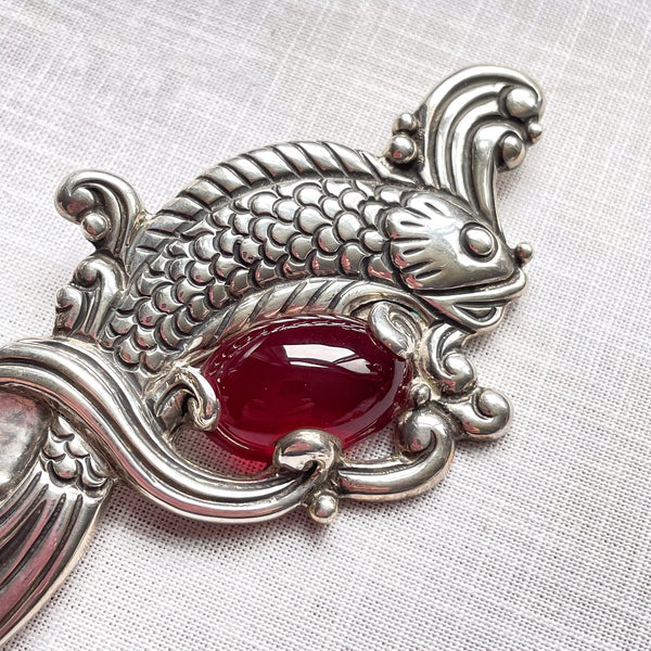 Rare Vintage Los Castillo Brooch Fish in Waves Brooch, Taxco Sterling Brooch #514C