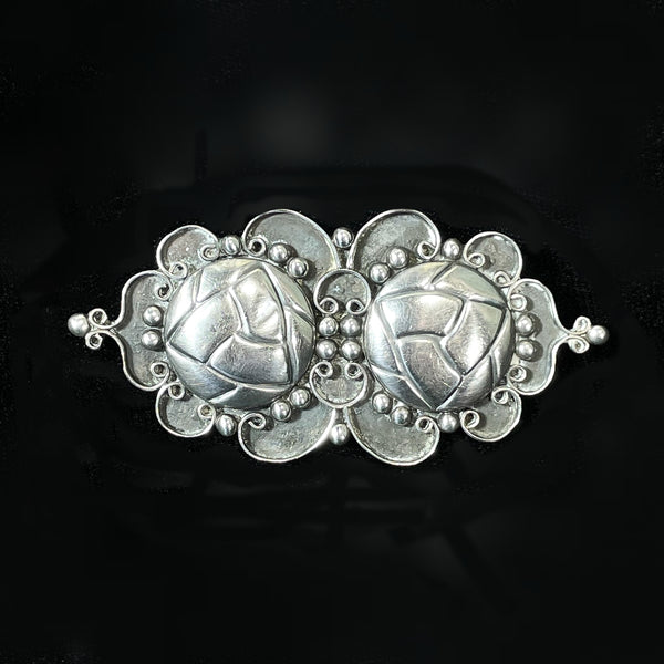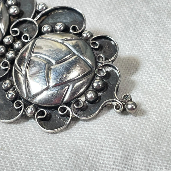Vintage Silver Mexican Brooch, Spanish Colonial Style 2 3/4" L