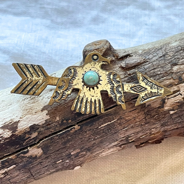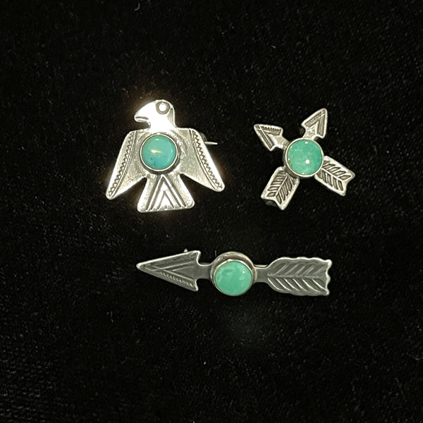 Vintage Silver Turquoise 3 Small Pin Collection, Thunderbird Arrow Crosses Lot