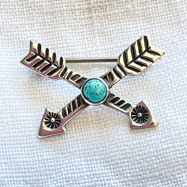 Vintage Fred Harvey Era Silver Turquoise Crossed Arrow Brooch/Pin