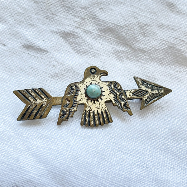 Vintage Fred Harvey Era Brooch/Pin, Silver Tone Bird on Arrow, Legit Wear