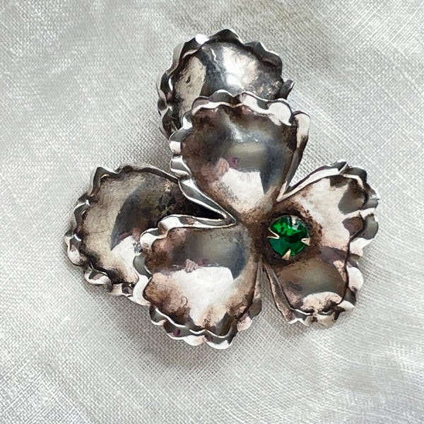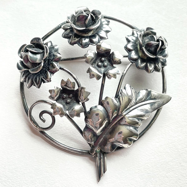 Vintage 40s Sterling Silver Flower Brooch