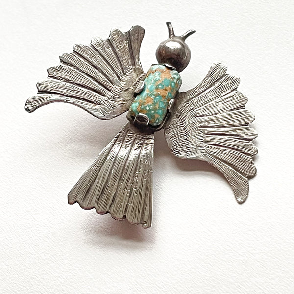 SOLD Vintage/Antique Silver Turquoise Southwestern Bird Brooch