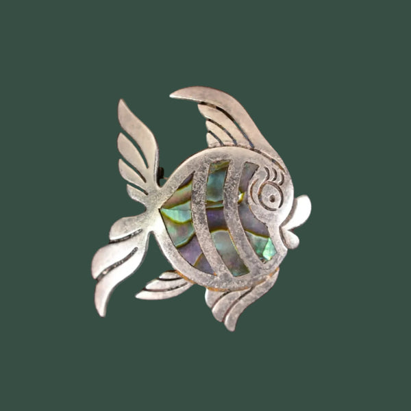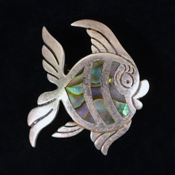 Vintage 40s Taxco Sterling Silver Abalone Fish Brooch Signed PC/Pedro Castillo 4.8 Grams