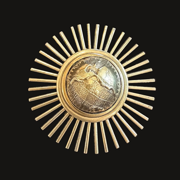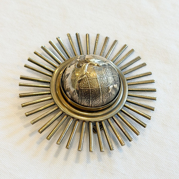 Steampunk Jan Michaels Starburst Globe Brooch 2.25" Dia