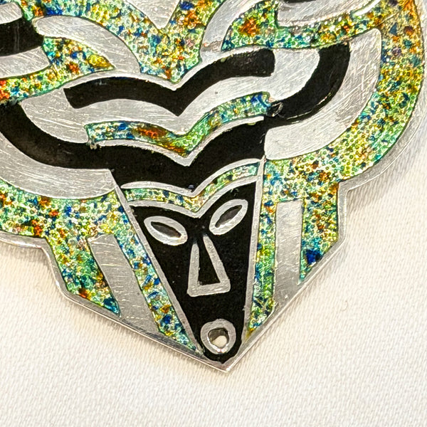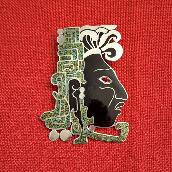 Margot de Taxco Large 'Maya Profile' Sterling Enamel Pendant/Brooch, Book Piece