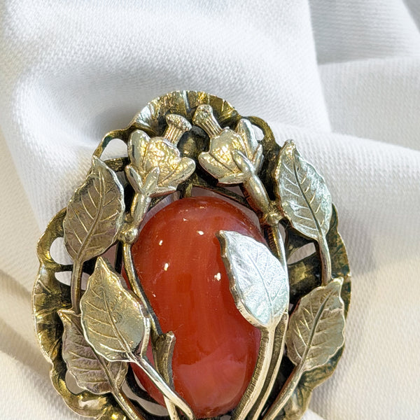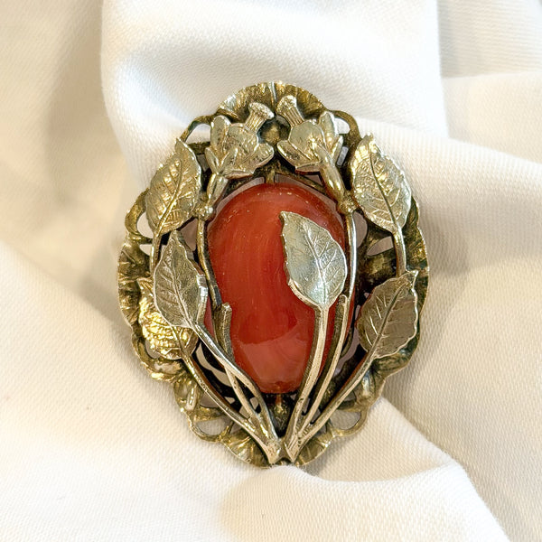 Vintage/Antique Art Nouveau Thistle Carnelian Brooch 2" H