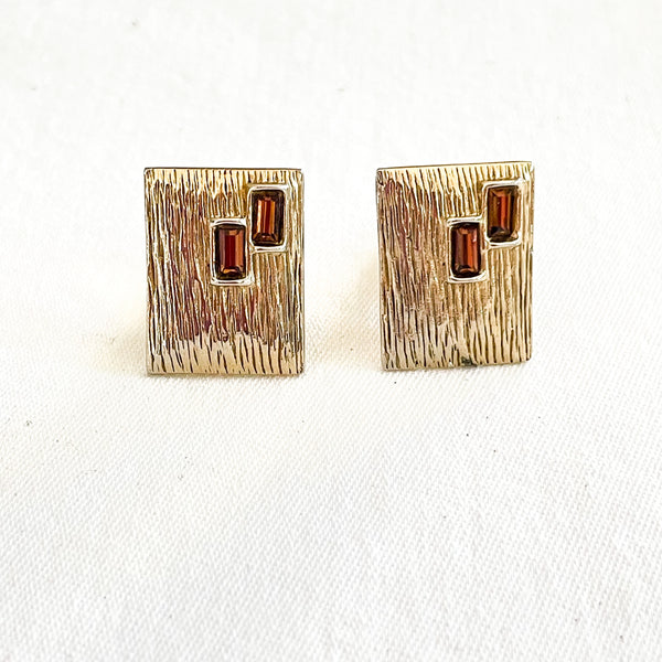 Vintage Swank MCM Gold Tone Etched Cufflinks with Topaz Glass Stones