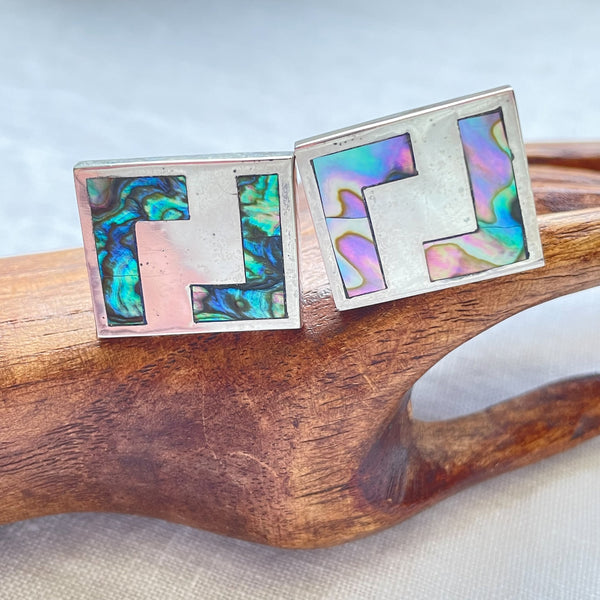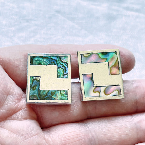 Vintage Sterling Silver Abalone MCM Cufflinks, Taxco Mexico 12 Grams
