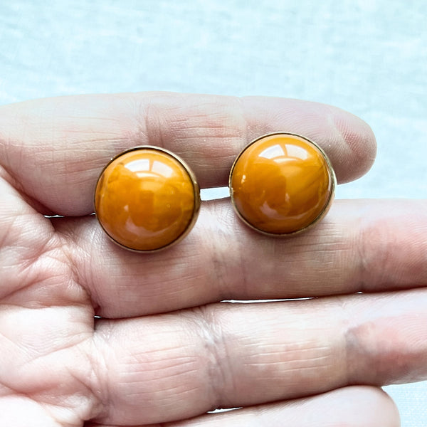 Vintage Swank Butterscotch Cufflinks, Round MCM Goldtone Cufflinks