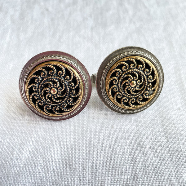 Vintage MCM Gold & Silver Toned Swirl Cufflinks, by Oxford
