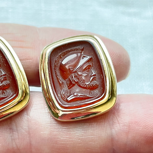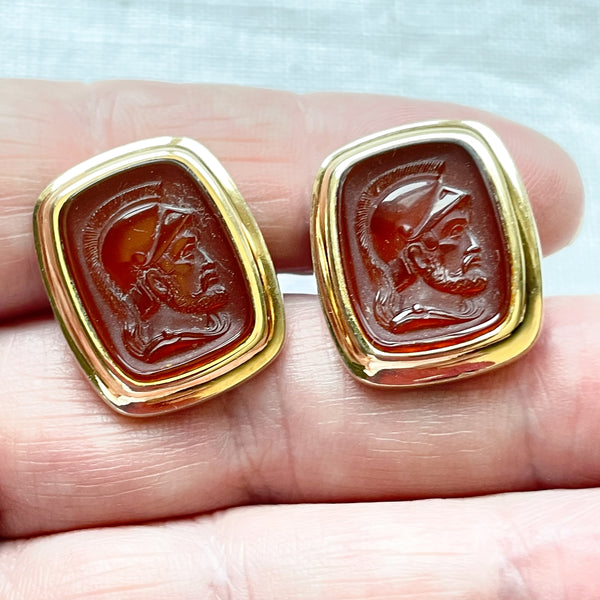 Vintage Intaglio Fashion Cufflinks, Warrior Resin/Gold Toned MCM Cufflinks by Krementz