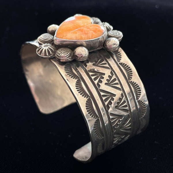 Damian Cotton Navajo Bracelet, Spiny Oyster Sterling Stamped Bracelet