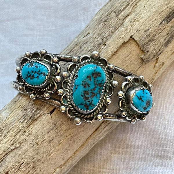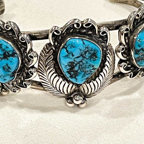 Vintage 1940s Navajo Sterling Silver Turquoise Cluster Cuff Bracelet 55.1 Grams