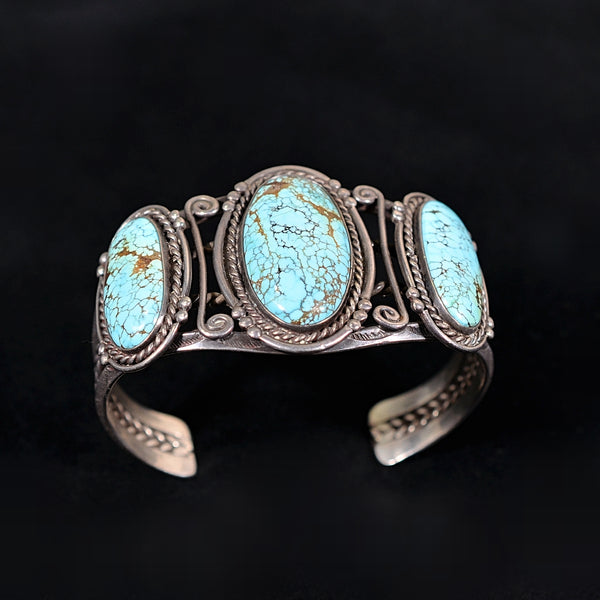 Vintage 1940s Navajo #8 Turquoise Silver Native American Cuff Bracelet 59.5 Grams