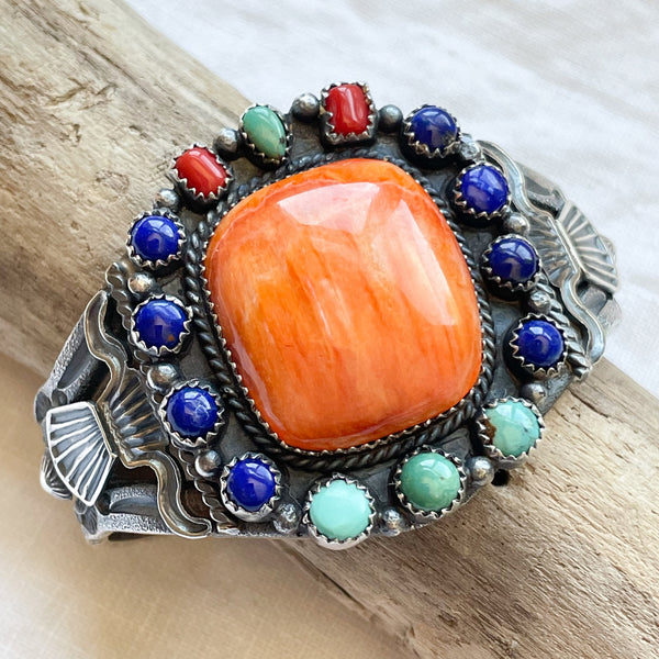 SOLD EL Billah Spiny Oyster Native American Bracelet, Sterling Silver Tufa Cast Cuff Bracelet 71.3 G