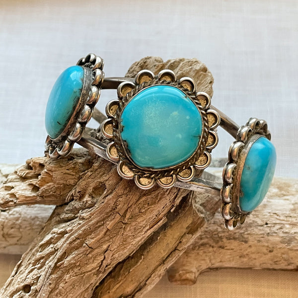 Vintage 60s Navajo, Blue Gem Turquoise Native American Cuff Bracelet 53.3 G