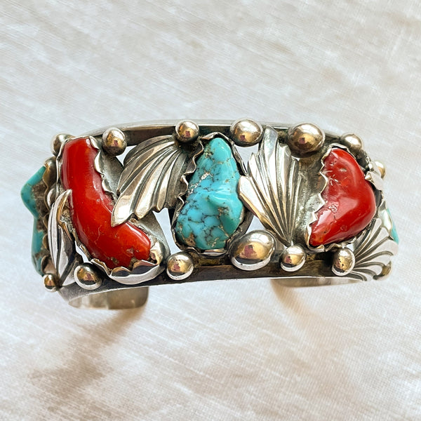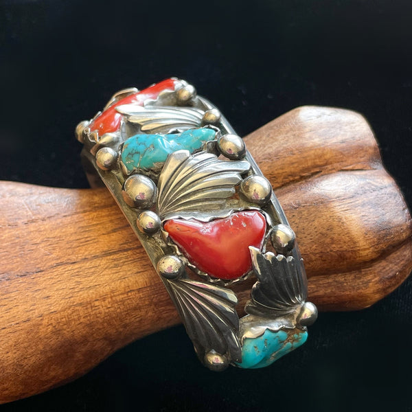 Dan Simplicio Vintage Sterling Turquoise Coral Statement Cuff Bracelet