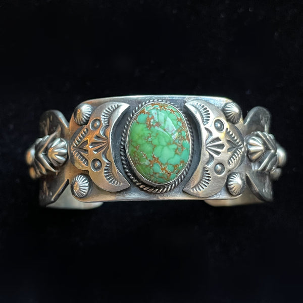 Vintage Green Turquoise Sterling Native American Bracelet, 110 G