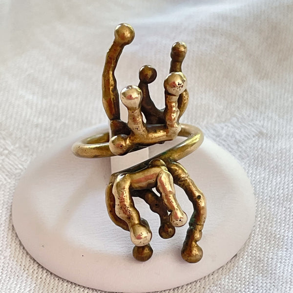 SOLD Vintage Biomorphic Brutalist Modernist Artisan Ring, Organic Spore