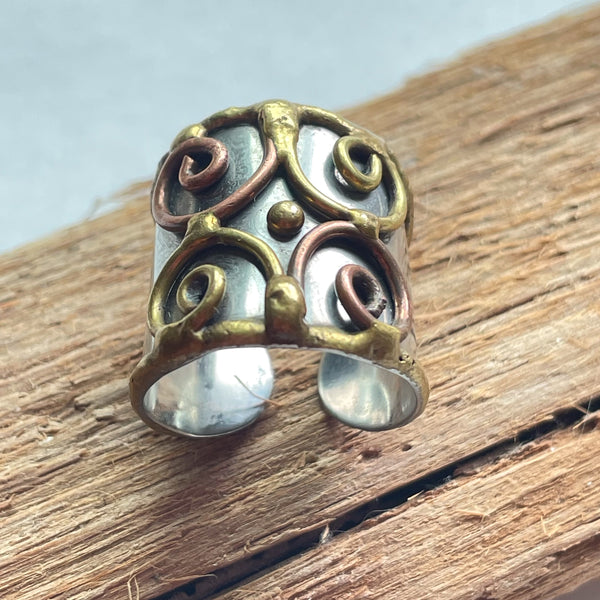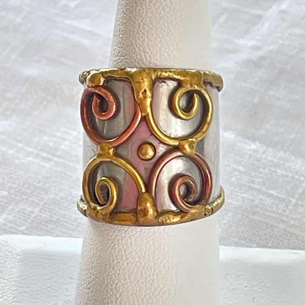 Vintage Brutalist Modernist Artisan Ring, Mixed Metals