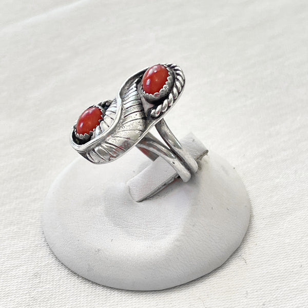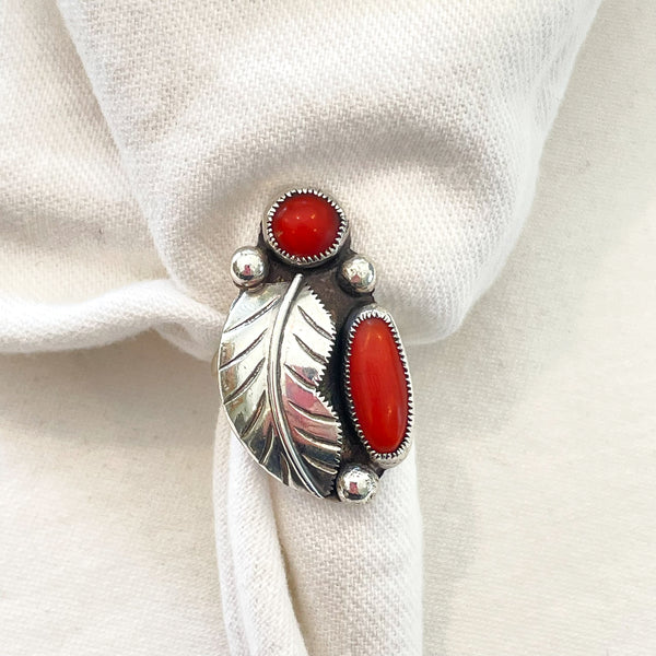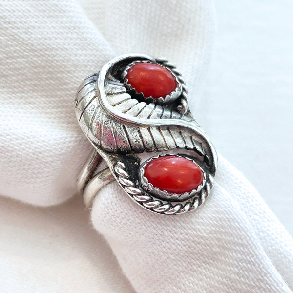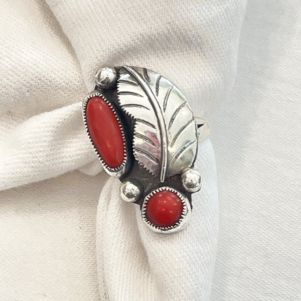 Vintage Sterling Southwestern Coral Leaf Ring SZ 7 1/4