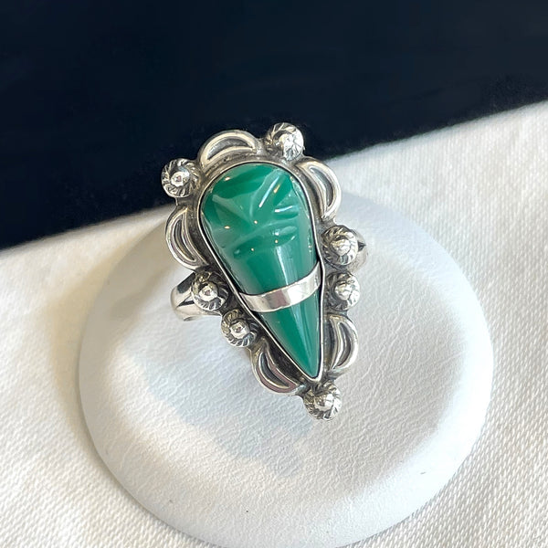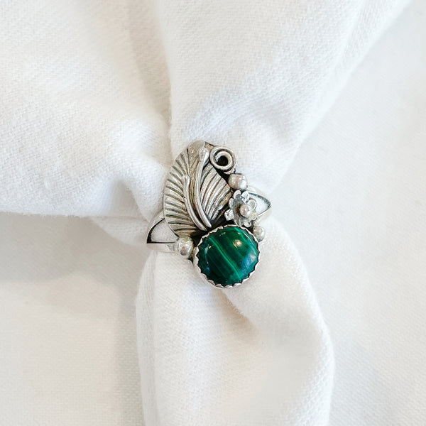 Vintage Southwestern Sterling Silver Malachite Stone Ring Size 7