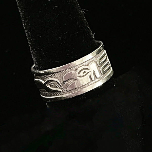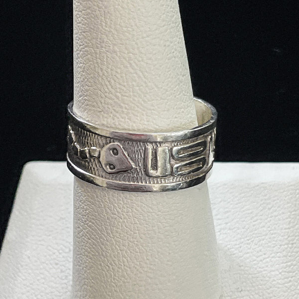 Silver Mayan Southwestern Animals Band Ring SZ 7 1/2