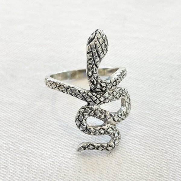 Sterling Silver Coiled Snake Ring, Southwestern Egyptian Revival Serpent Ring SZ 7 1/4