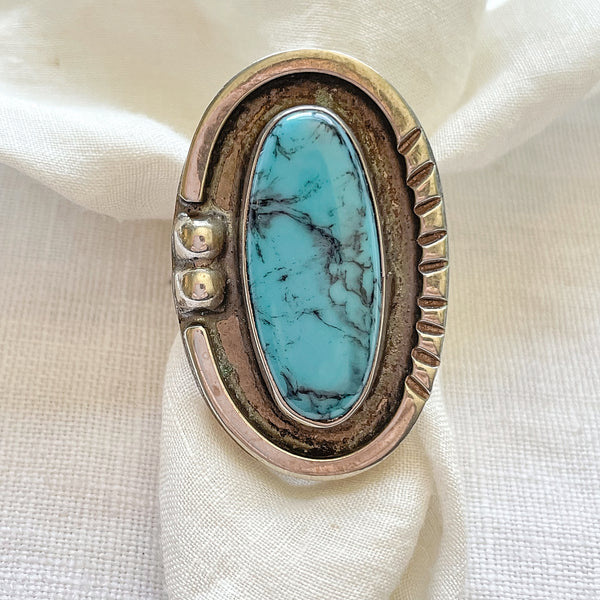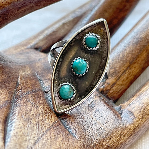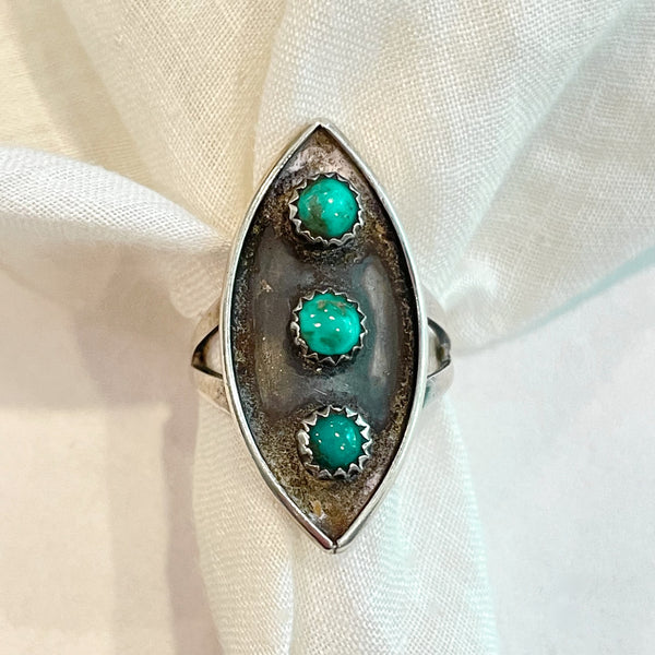 Native American Southwestern Statement Ring, Sterling Teardrop Turquoise Stones