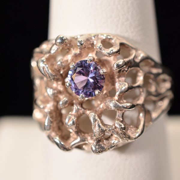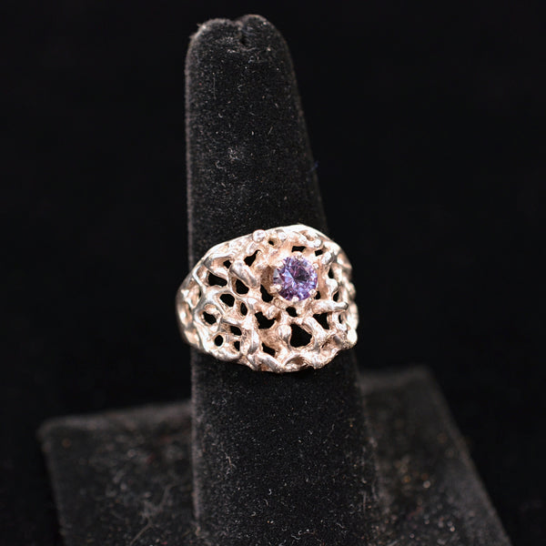 Vintage Sterling Silver Brutalist Modernist Abstract Ring, Lavender Stone SZ 8