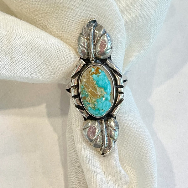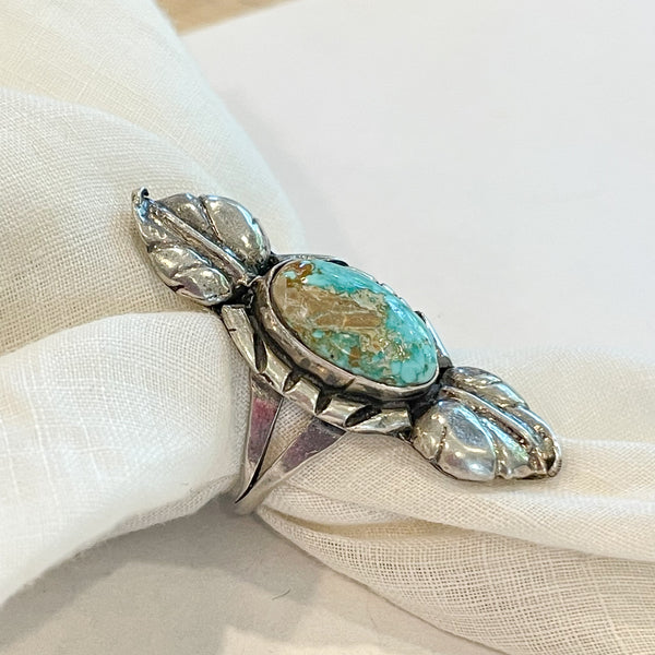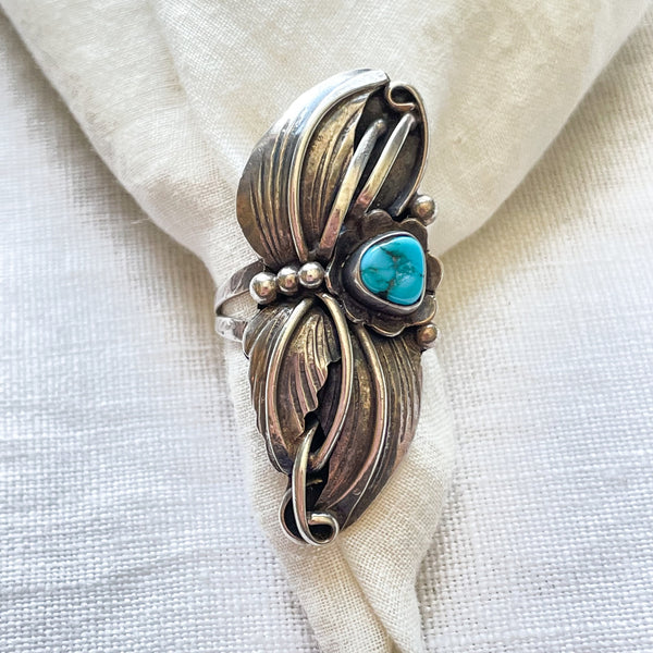 Vintage Silver Turquoise Ring, Southwestern Native American Leaf Ring Size 5 3/4