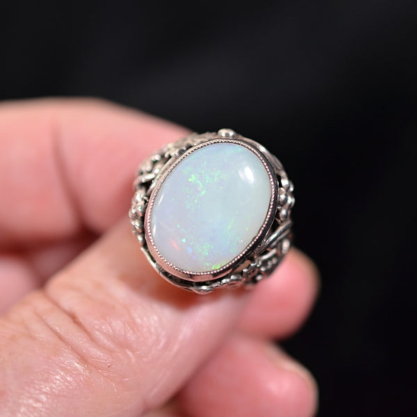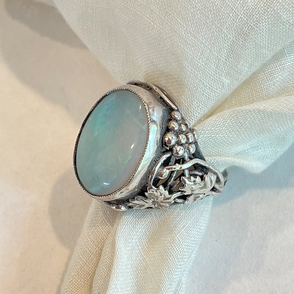 SOLD Vintage/Antique Sterling Silver Opal Grapevine Ring, Art Nouveau Victorian Ring Size 5