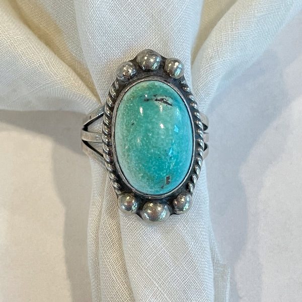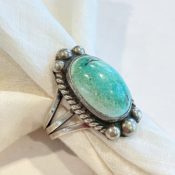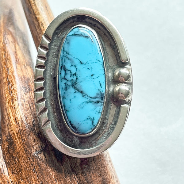 Vintage Native American Silver Turquoise Ring, Southwestern Jewelry Size 7 1/2