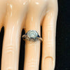 COLOR: White gold, clear diamond, synthetic blue sapphire.