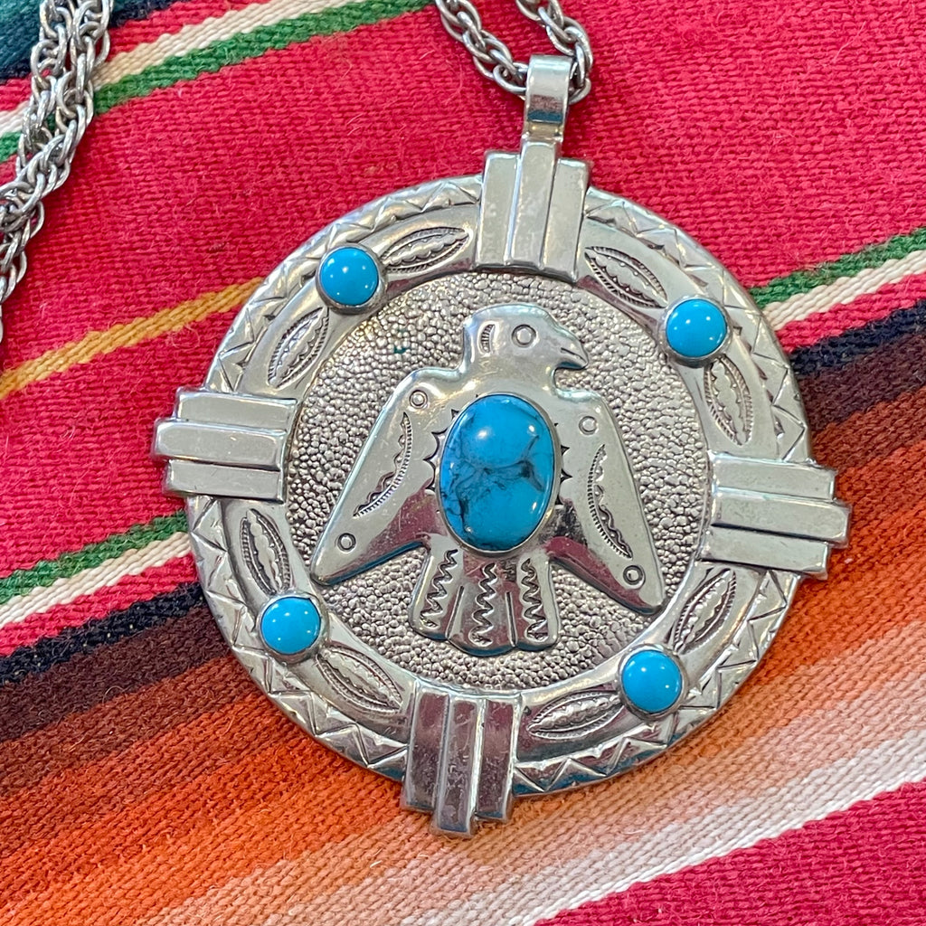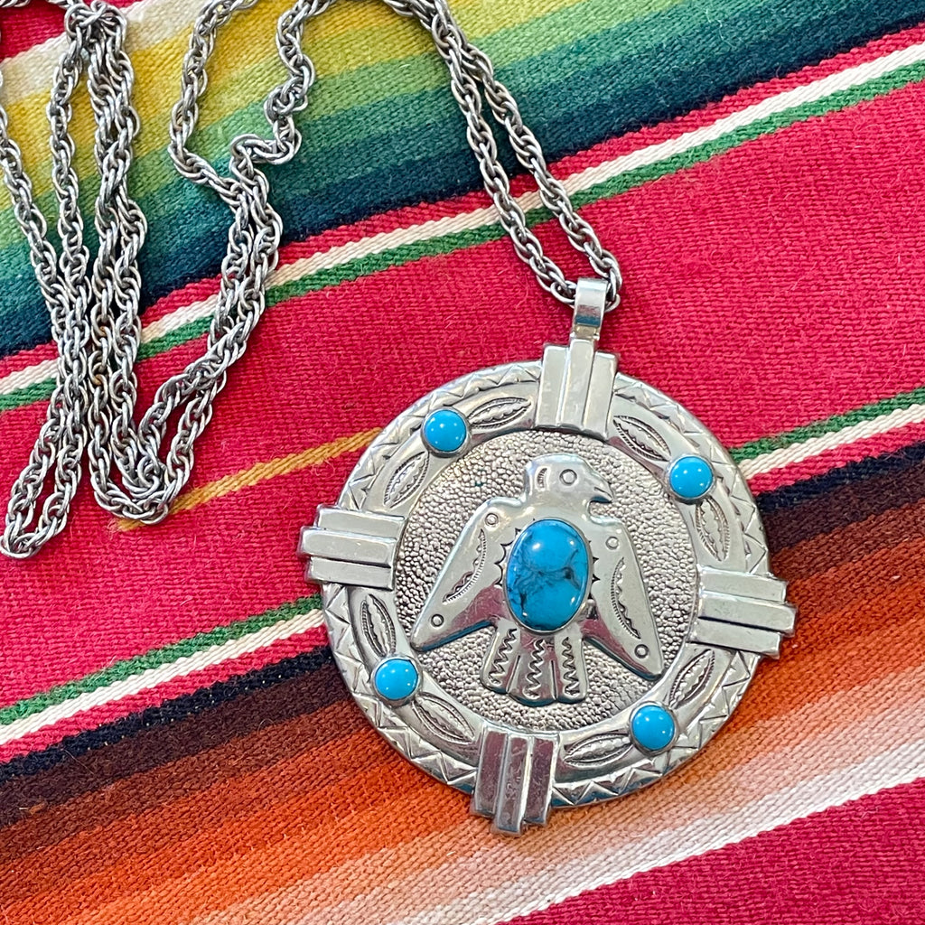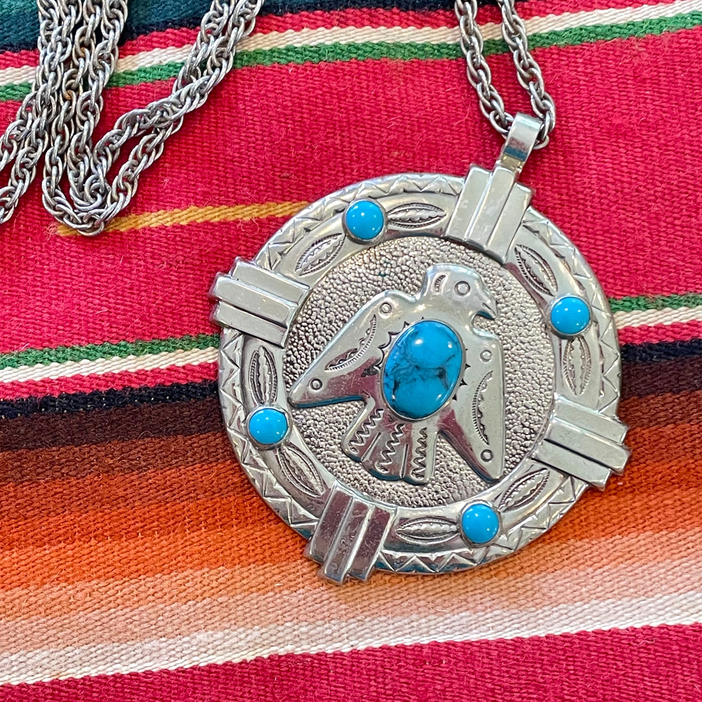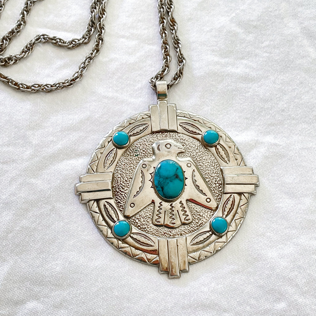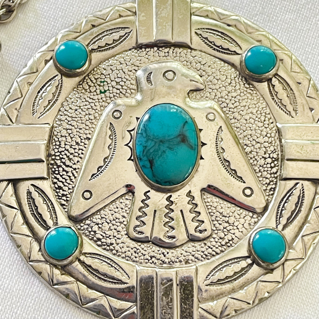 Bell Trading Post Pendant Necklace, Nickle Silver Faux Turquoise Southwestern Style