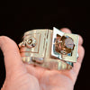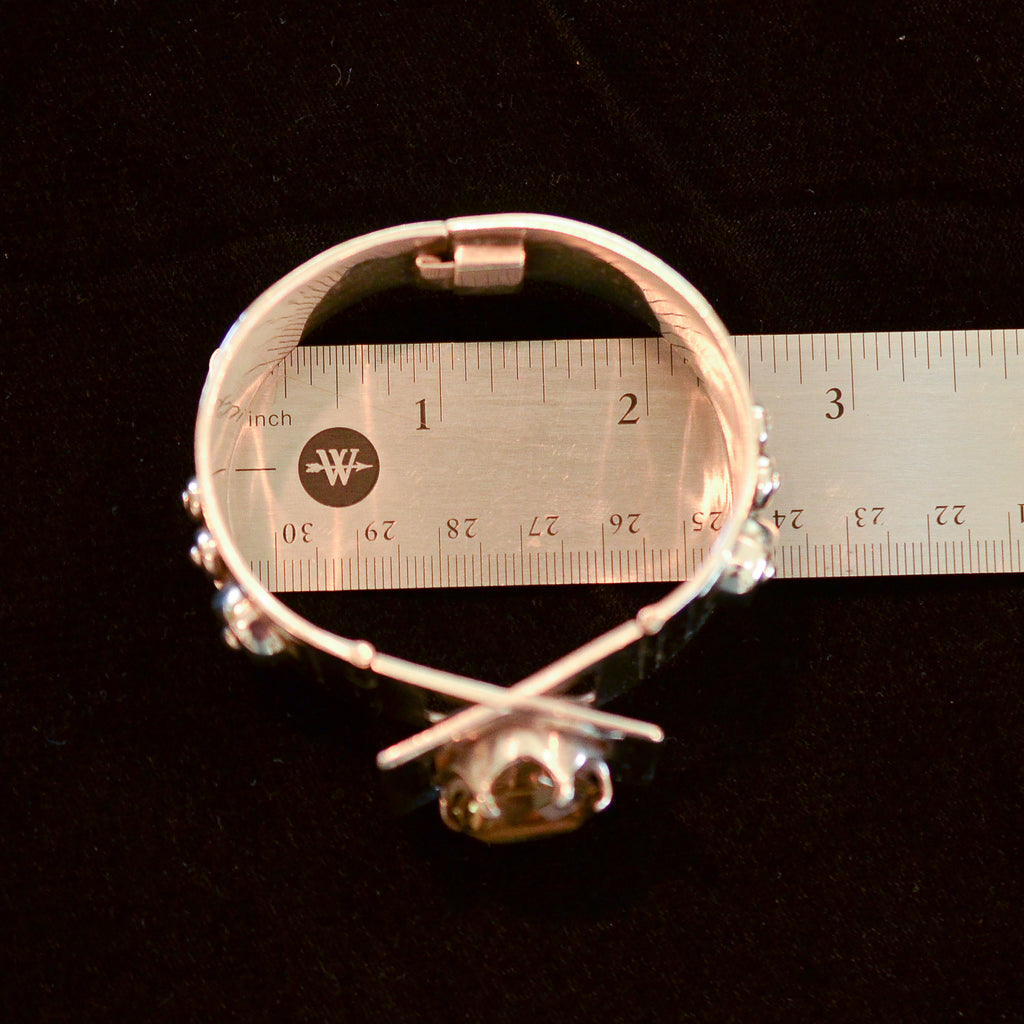 MEASUREMENTS: Interior circumference: 6 7/8", Side to side 2 1/2", Front Width 1" that eases down to 3/4"at the back. Topaz approx: 11/16"