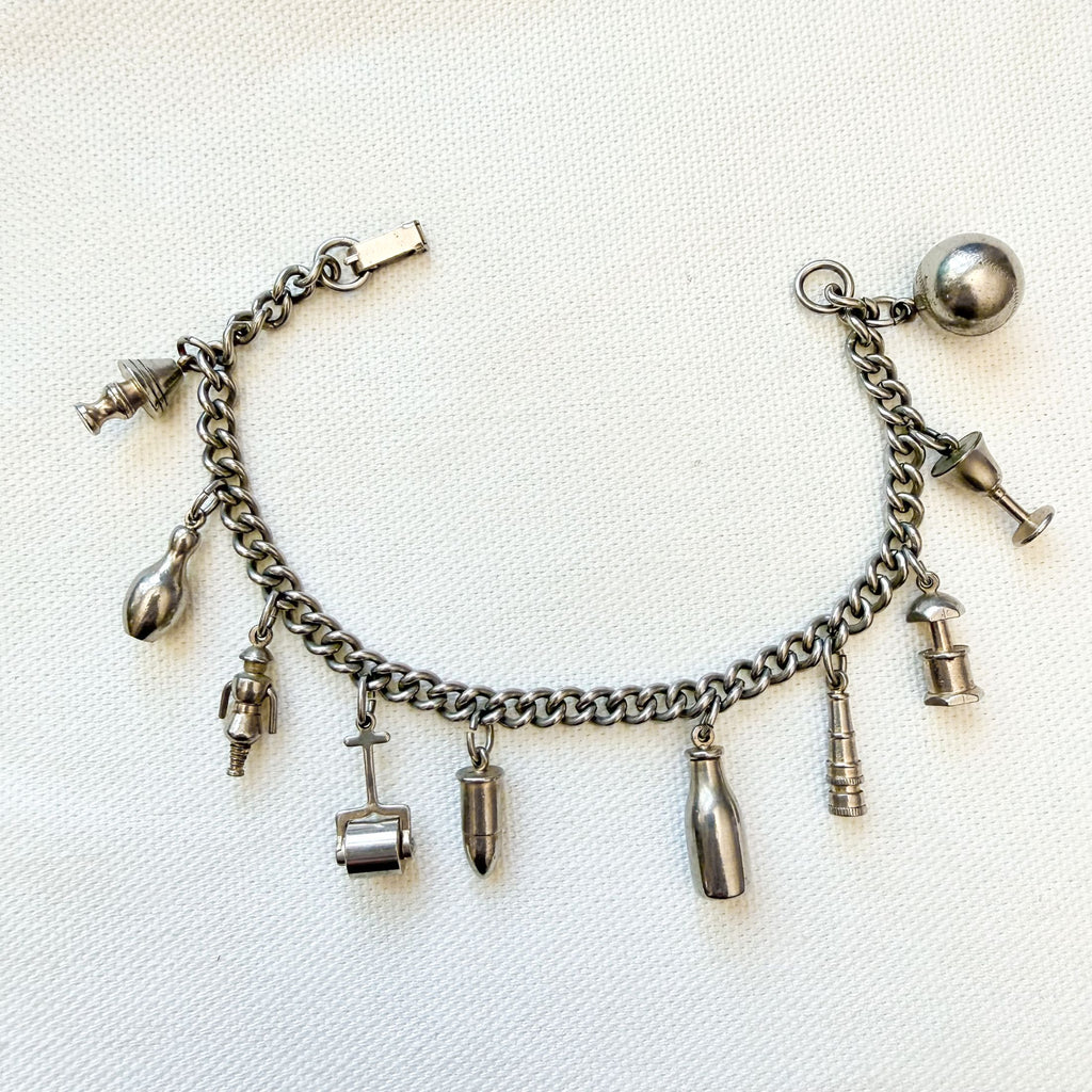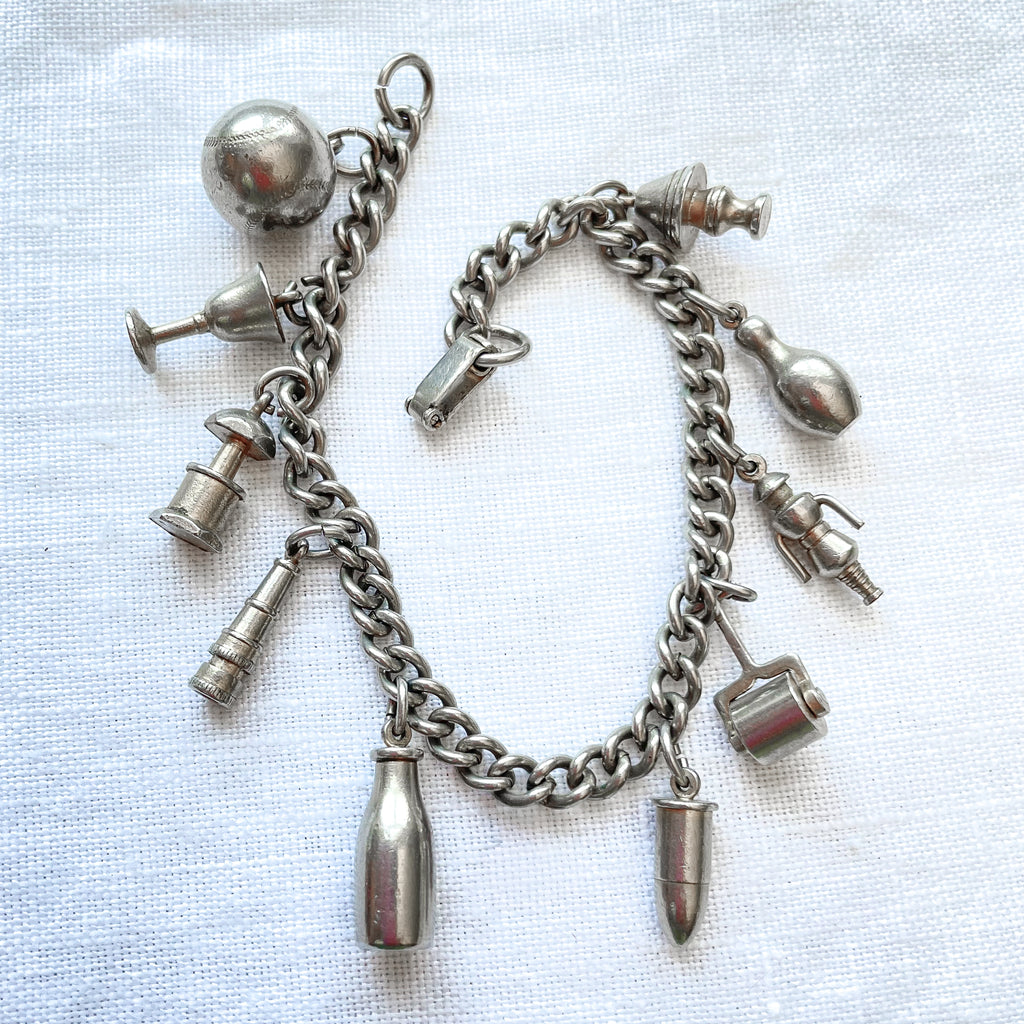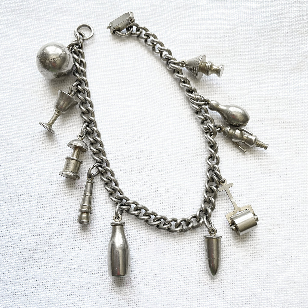 Charming silver tone vintage charm bracelet.