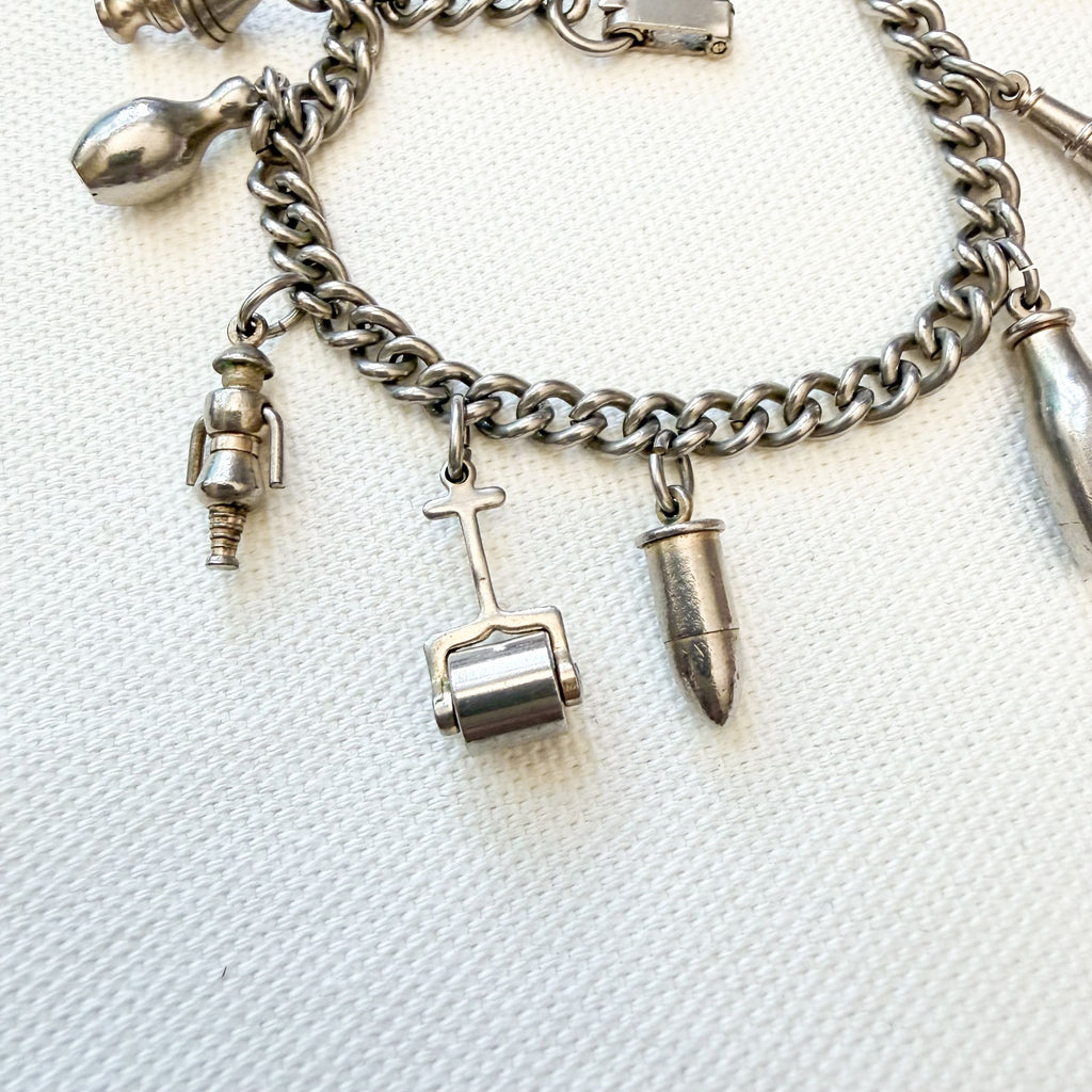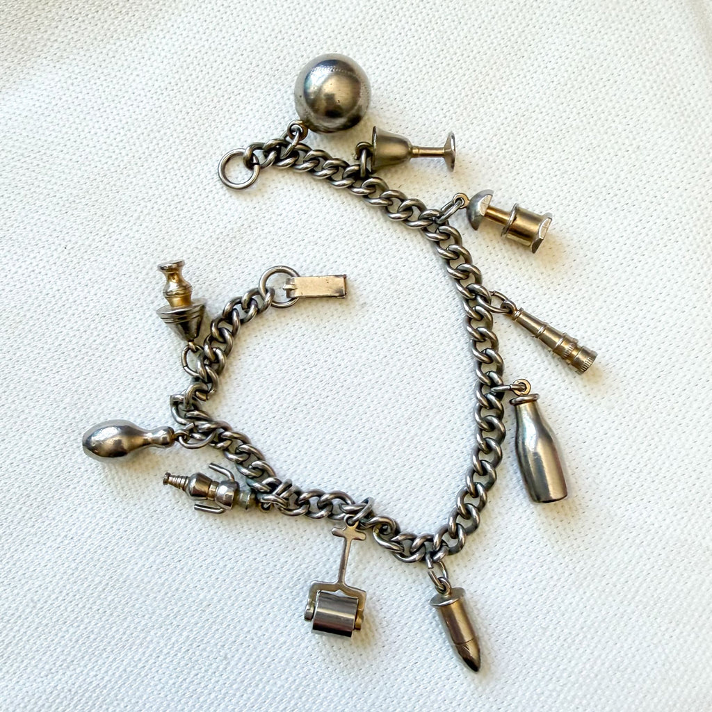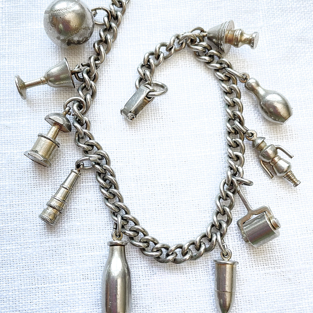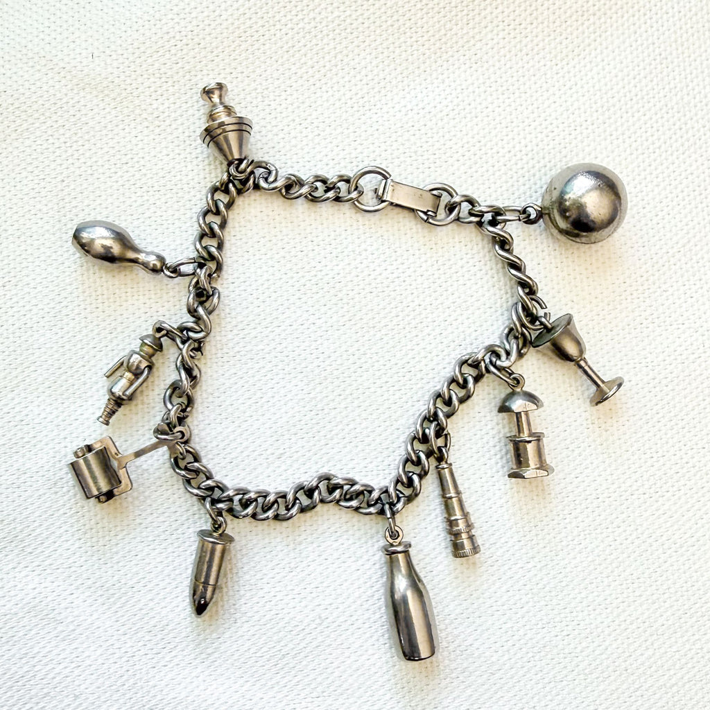 Charming silver tone vintage charm bracelet.