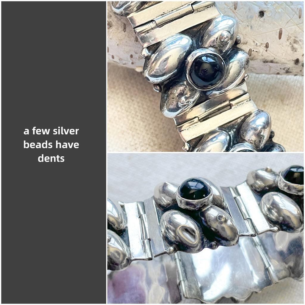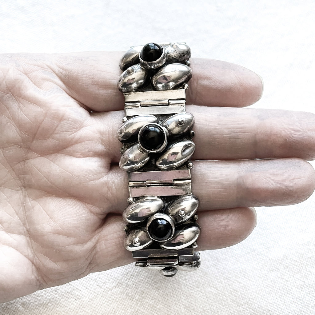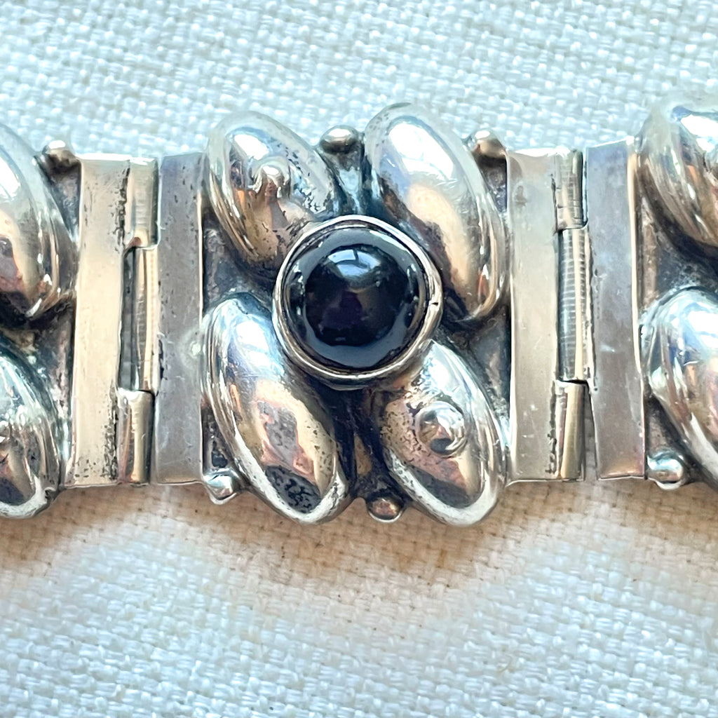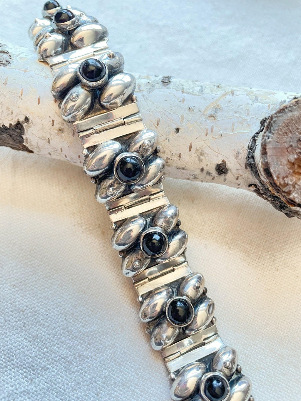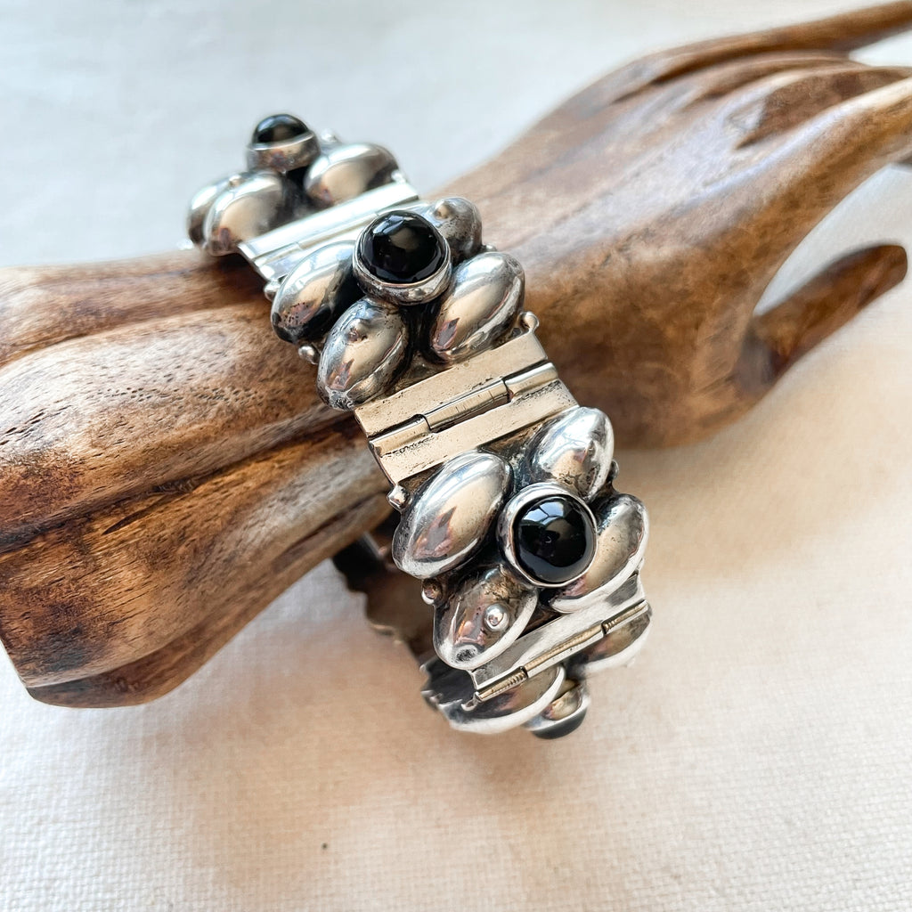 Vintage Mexican Sterling Silver bracelet with black onyx accent stones.