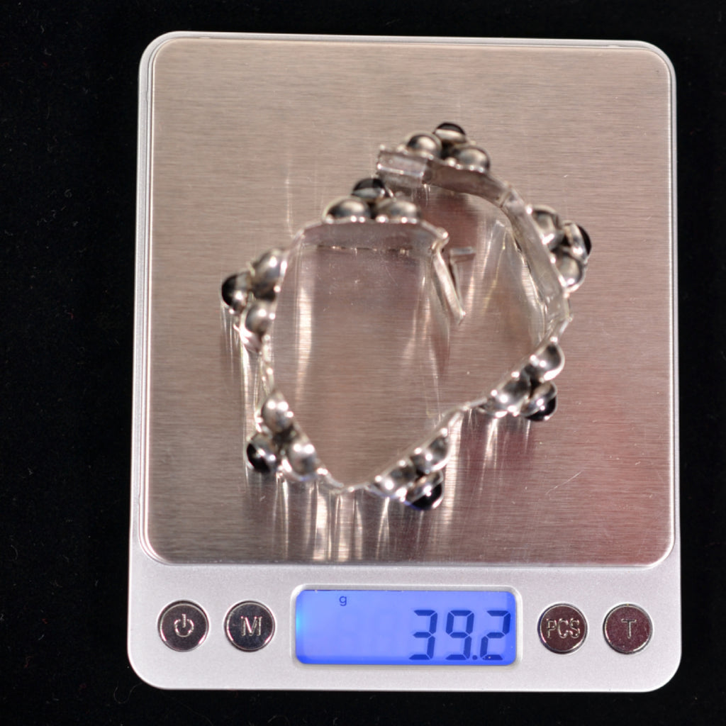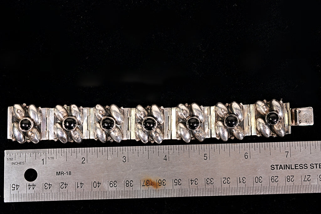 Vintage Mexican 925 Sterling Silver Onyx Bracelet, Hallmarked 39.2 Grams