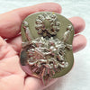 The pendant/brooch is heavily detailed with swords, griffins, and more details. Refer to photos for more details.