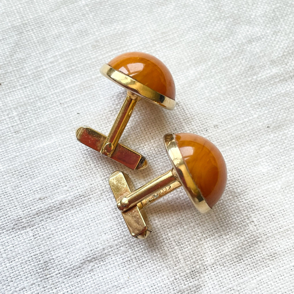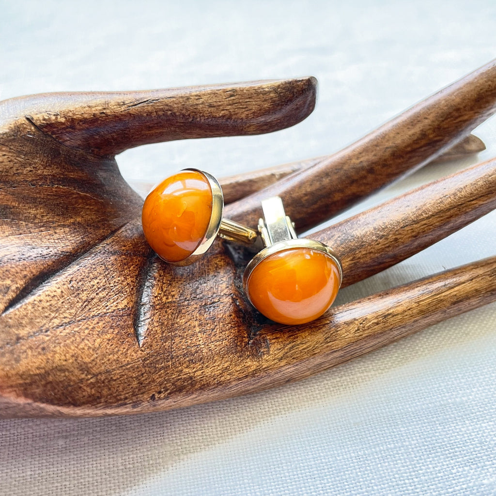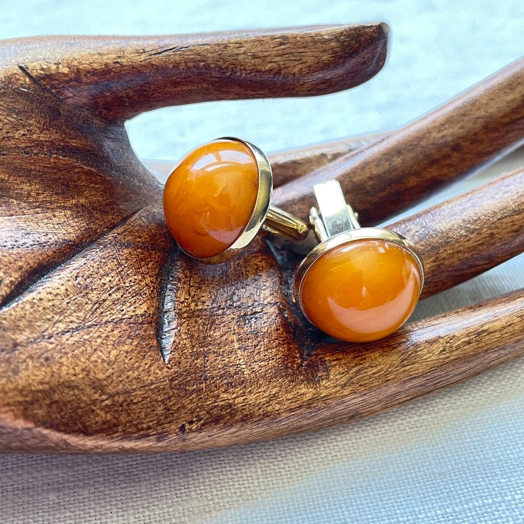 Vintage round butterscotch color gold tone cufflinks.