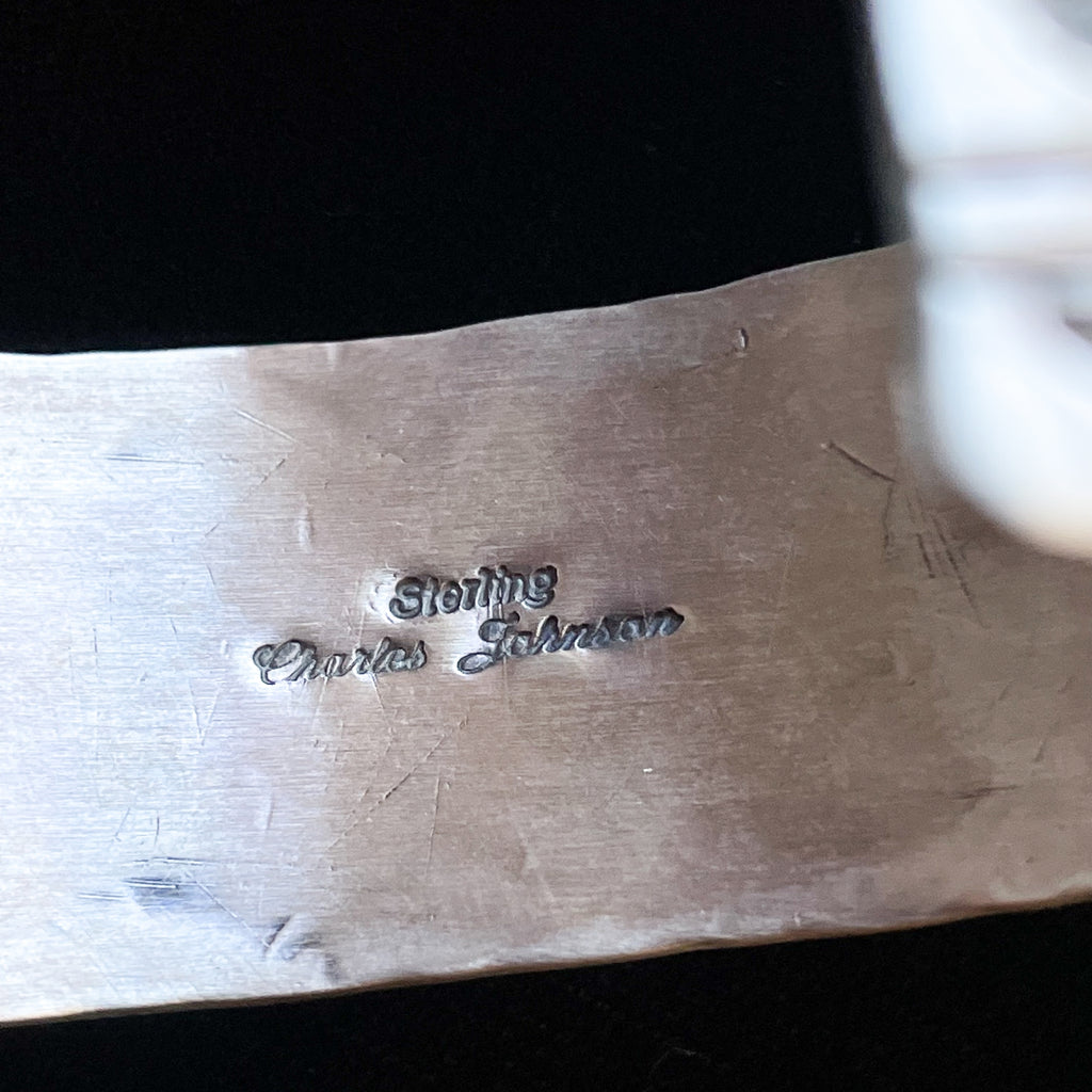 Charles Johnson, Navajo, sterling silver heavily detailed cuff bracelet.