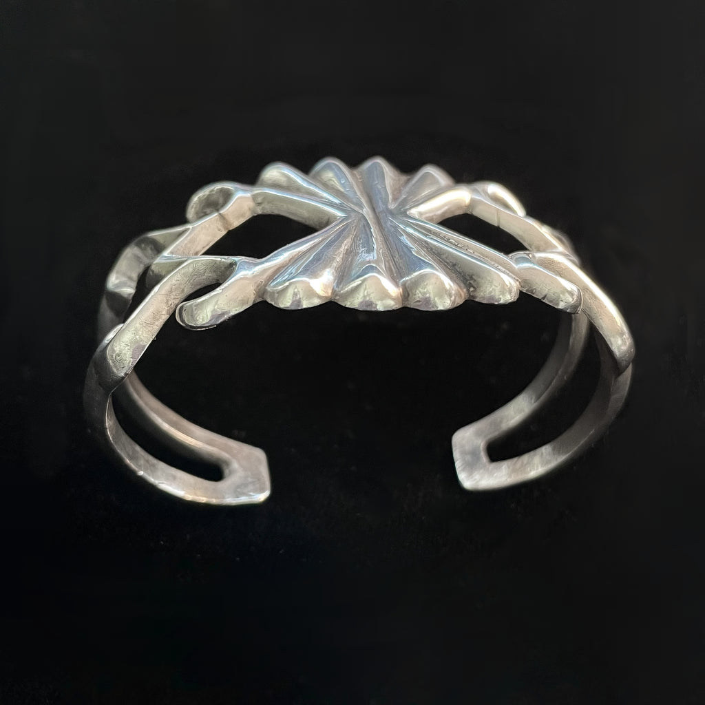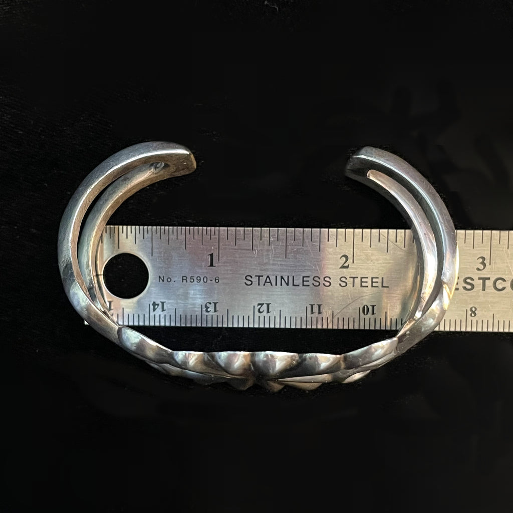 Unsigned Navajo cuff with a slightly flattened top of bracelet design for better fit.