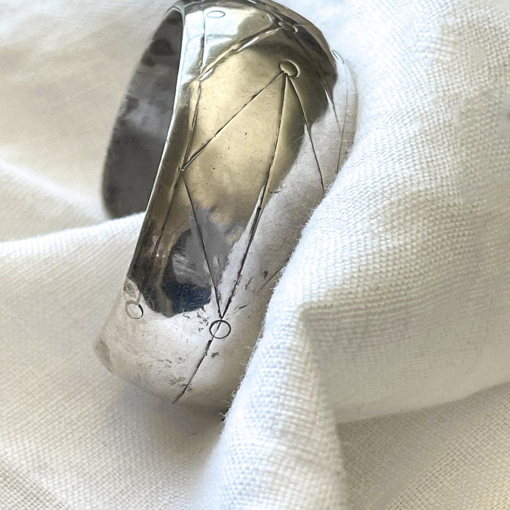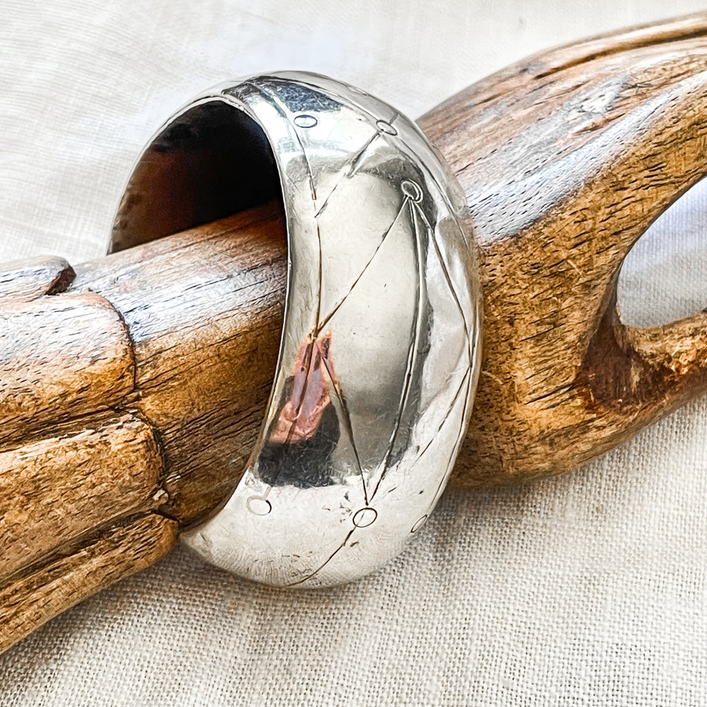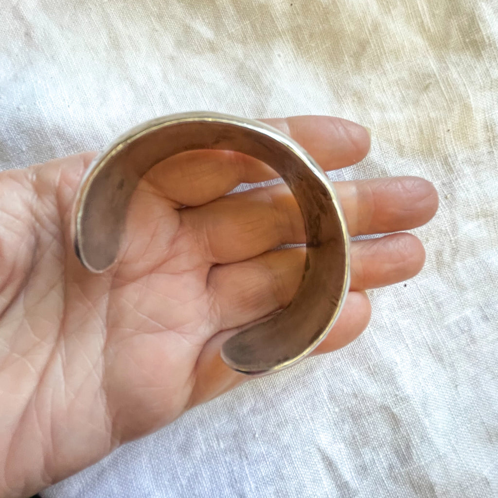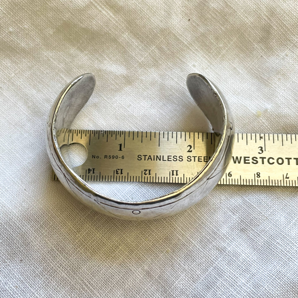 Vintage Native American Etched Sterling Cuff Bracelet, Signed JR, Fits Small Wrist