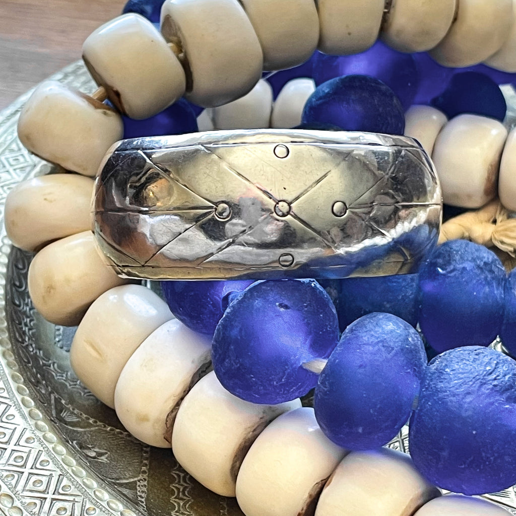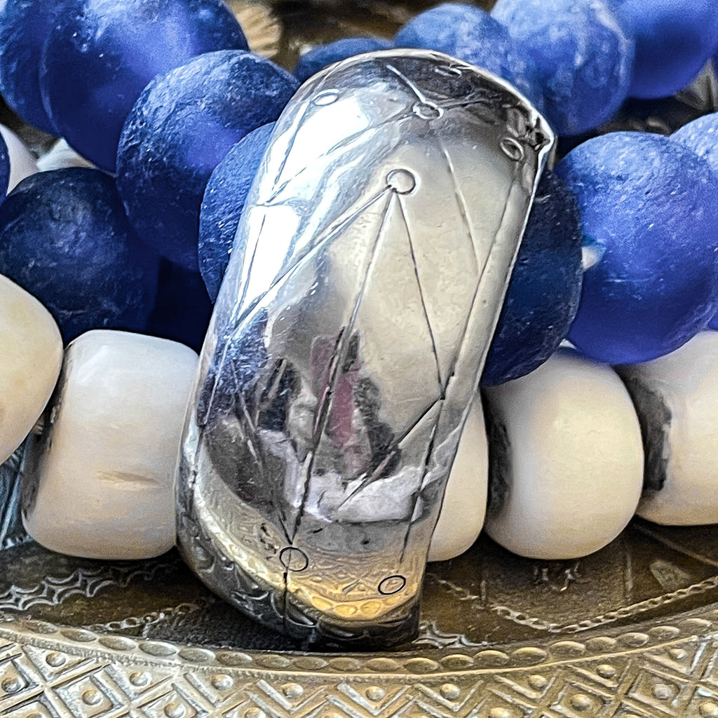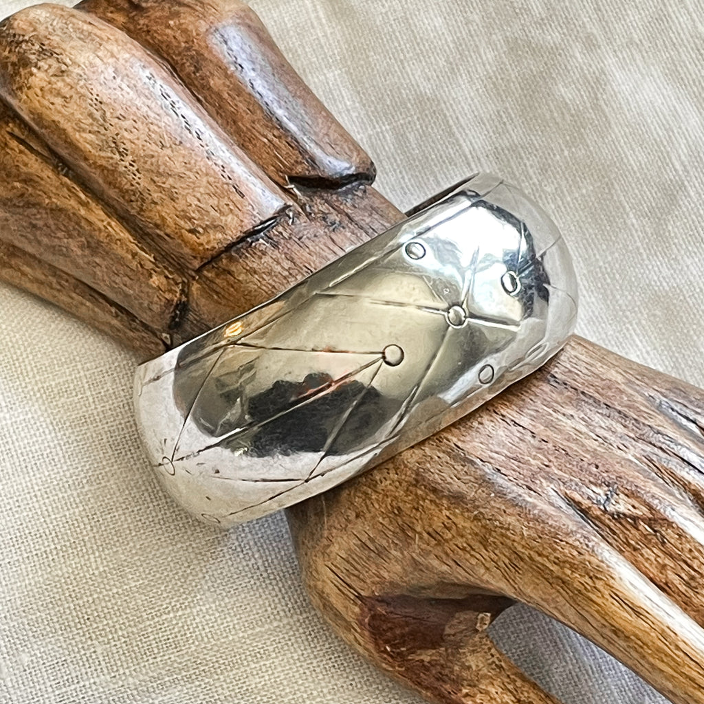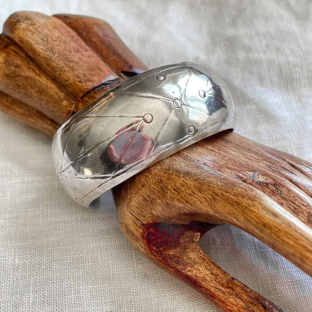 Vintage Native American Etched Sterling Cuff Bracelet, Signed JR, Fits Small Wrist