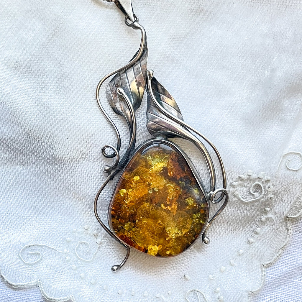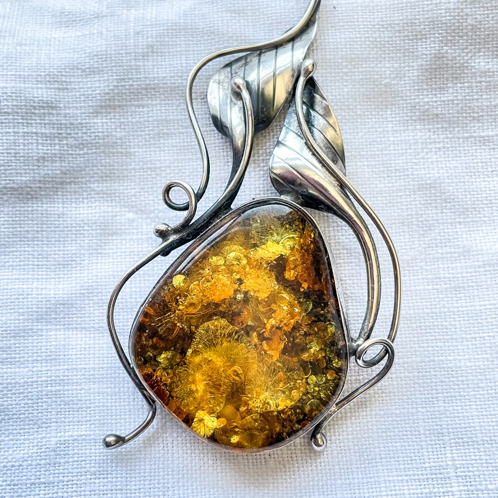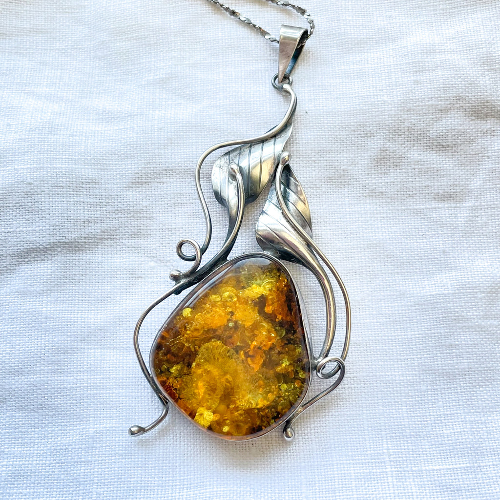Beautiful vintage Baltic amber sterling silver pendant on a sterling silver necklace.