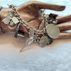 Vintage 12K white gold bracelet with assorted sterling silver charms including: