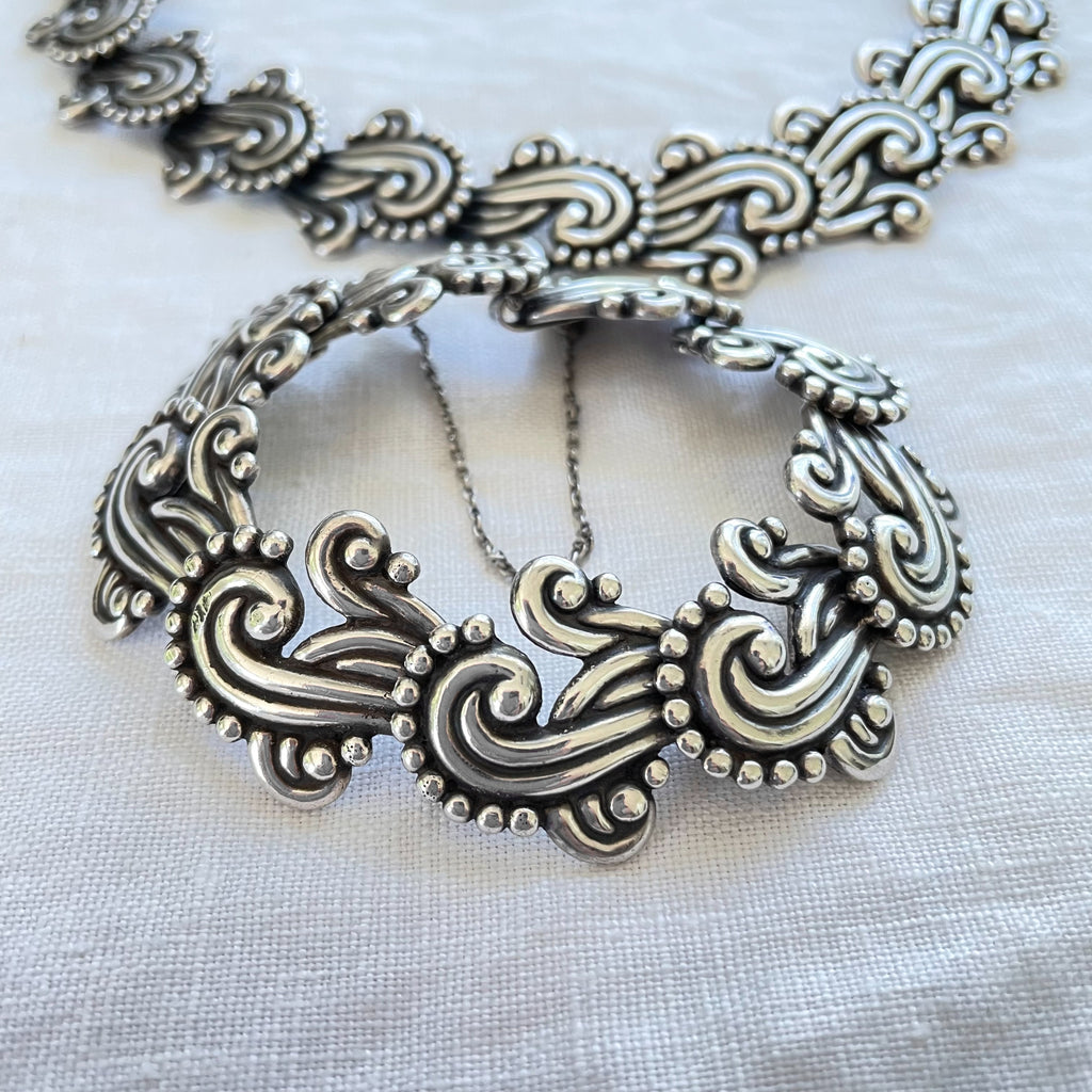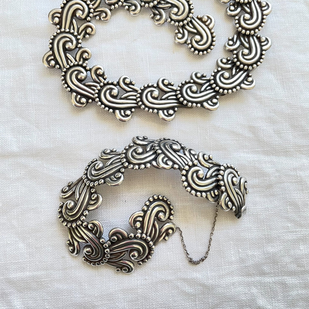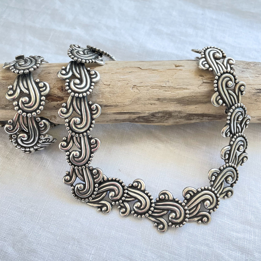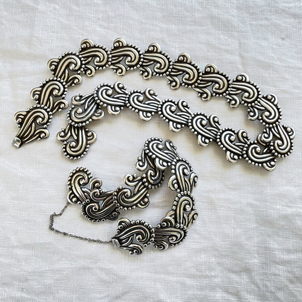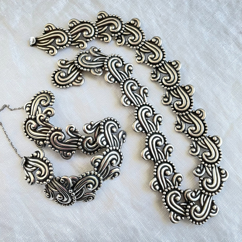 Vintage Los Castillo sterling silver necklace bracelet set.